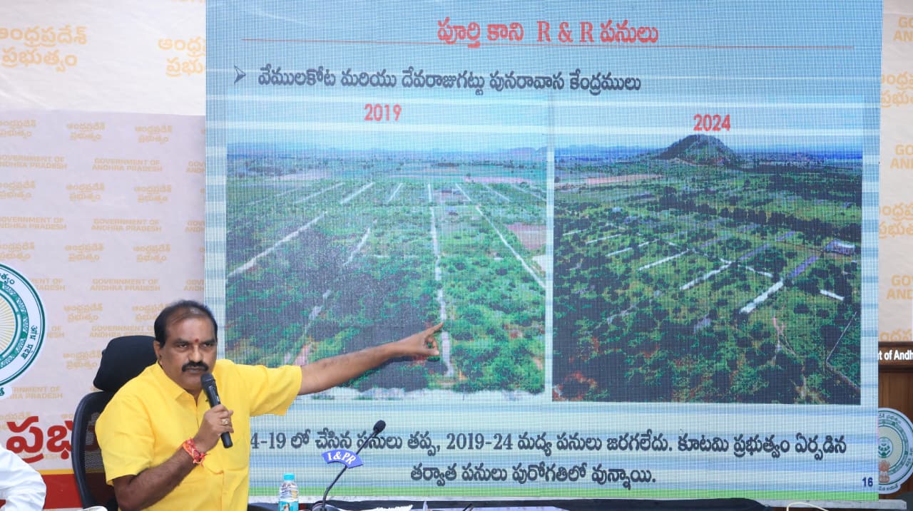 వేములకోట మరియు దేవరాజుగట్టు పునరావాస కేంద్రముల పనులు 2014-19 లో చేసిన పనులు తప్ప, 2019-24 మద్య పనులు జరగలేదు.
