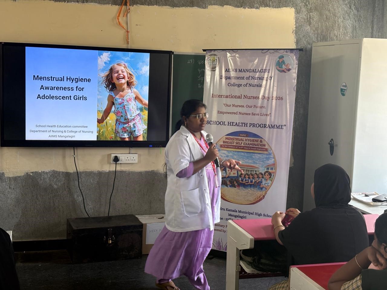 The programme was organized by the Department of Nursing Services and College of Nursing, AIIMS Mangalagiri, with the objective of promoting health awareness and hygienic practices among school students.