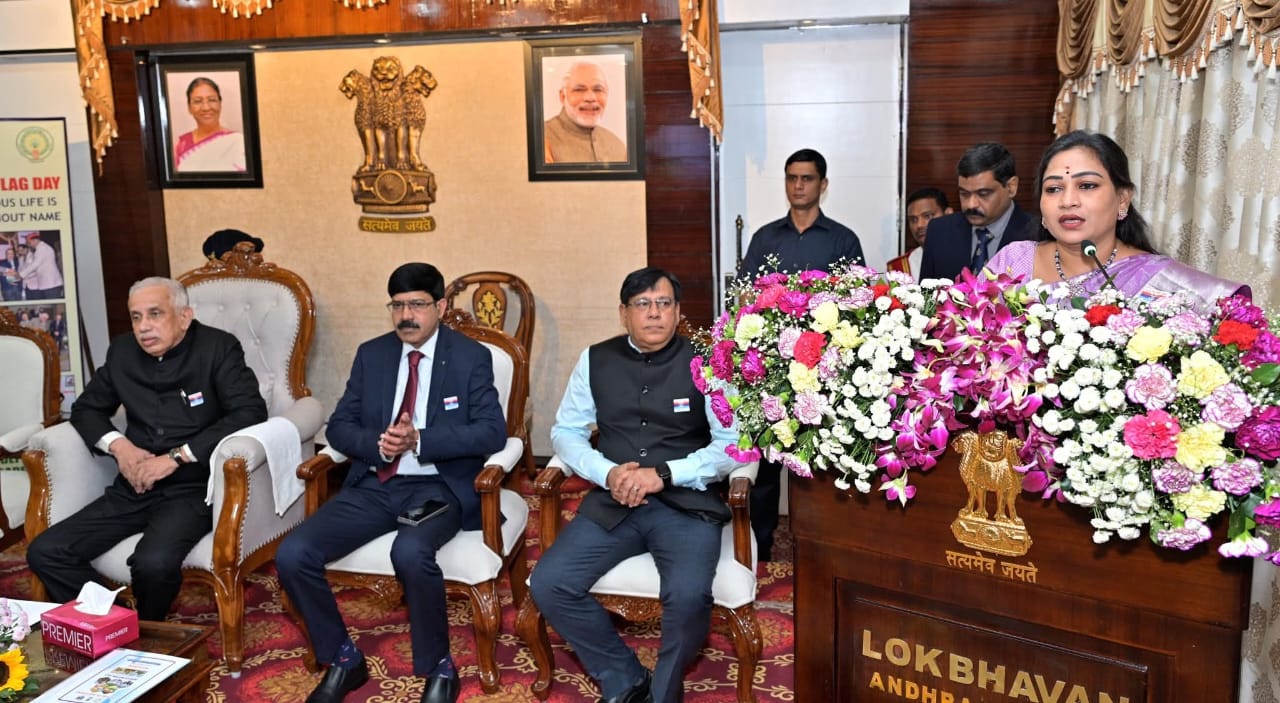 మాజీ సైనికుల సంక్షేమం కోసం ఆంధ్రప్రదేశ్ ప్రభుత్వం చేపడుతున్న కార్యక్రమాలపై రూపొందించిన ‘మన మార్గదర్శి’ పుస్తకాన్ని గౌరవ గవర్నర్ అబ్దుల్ నజీర్ గారితో కలిసి ఆవిష్కరించిన హోం మంత్రి అనిత.