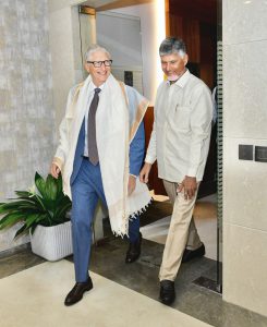 During interaction with ministers and officials, Bill Gates appreciating vision of Chandrababu Naidu said that the Chief Minister is ahead in thinking amongst global leaders. He said Indian is ahead in digital revolution and both the Prime Minister and Chief Minister are playing key role in digital revolution. He said that Gates Foundation giving priority for health sector and taken up majority of health projects. He stressed the need for rendering health services to all. He appreciated the Sanjeevani health project being implemented with Gates Foundation in Kuppam. He said AI will be more useful in bringing reforms in education sector. He appreciated the efforts of AP government in introducing technology in agricultural sector for the benefit of farmers. He opined that even in developed countries technology is not being used for agricultural sector, whereas Andhra Pradesh is ahead in using technology in agriculture. He also praised the Disaster management services using technology to prevent loss of life and property during natural calamities.
