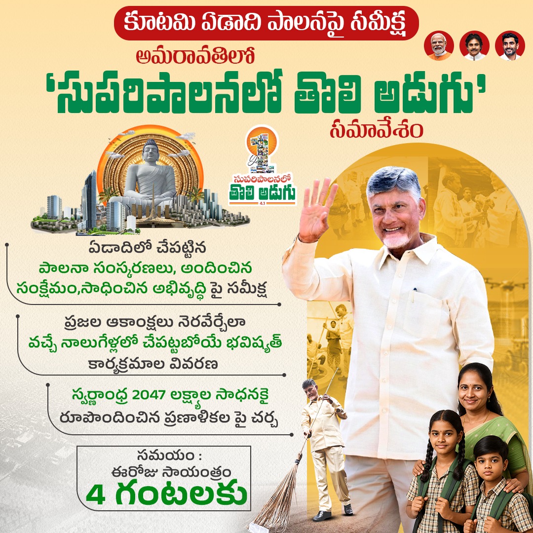 సుపరిపాలనలో తొలి అడుగు…ఏడాది పాలనపై రేపు కూటమి ప్రభుత్వం సమావేశం