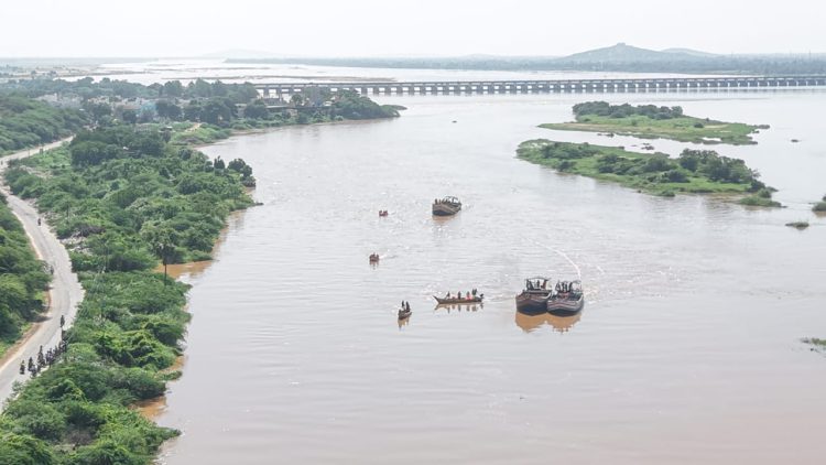 బుధవారం (29వ తేది) భారీ వర్షాల తాకిడికి పై నుండి కొట్టుకువచ్చిన మూడు పడవలలో రెండింటిని అదే రోజు ఒడ్డుకు చేర్చిన విషయం తెలిసిందే. మిగిలిన మూడవ పడవ బ్యారేజికి ఎగువన 400 మీటర్ల దూరంలో పాత ఆనకట్ట క్రైస్ట్ అడ్డుకోవడంతో నిలిచిపోయిన విషయం పాఠకులకు తెలిసిందే.