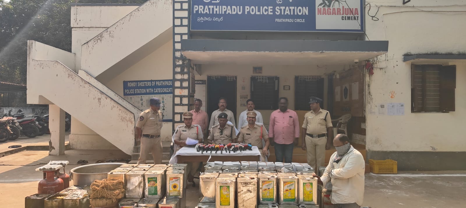ప్రతిపాడు మండలం ధర్మవరం పరిసరాల్లో కల్తీ నూనె తయారవుతున్నట్లు అందిన విశ్వసనీయ సమాచారం మేరకు, ప్రతిపాడు ఎస్ఐ శ్రీమతి ఎస్. లక్ష్మీకాంతం తన సిబ్బందితో కలిసి ధర్మవరం NH-16 రోడ్డు పక్కన ఉన్న ఒక రేకుల షెడ్డుపై దాడి చేశారు. ఈ తనిఖీల్లో నిందితుడు బండారు ఫణి ప్రసాద్ (38), నివాసం FK పాలెం, జంతువుల కొవ్వు మరియు క్రూడ్ ఆయిల్ మరిగించి కల్తీ వంట నూనె తయారు చేస్తూ రెడ్ హ్యాండెడ్ గా పట్టుబడ్డాడు.