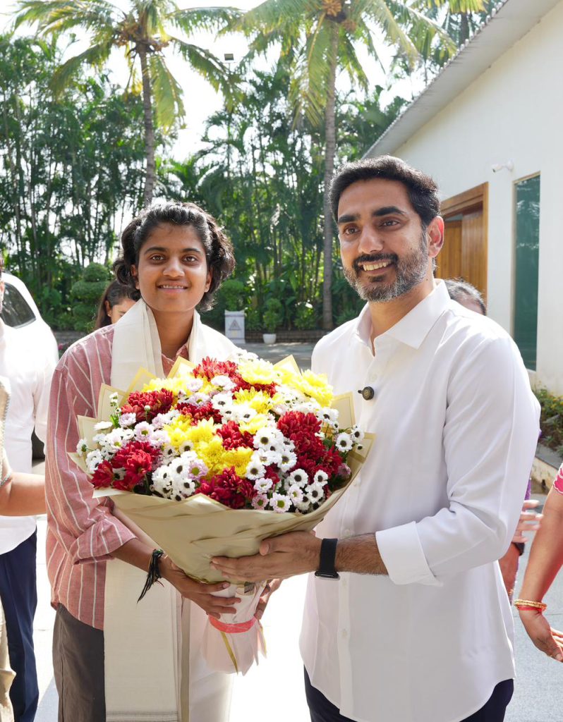 • క్యాంప్ కార్యాలయానికి వచ్చిన శ్రీచరణి, మిథాలి రాజ్కు స్వాగతం పలికిన మంత్రి నారా లోకేష్.