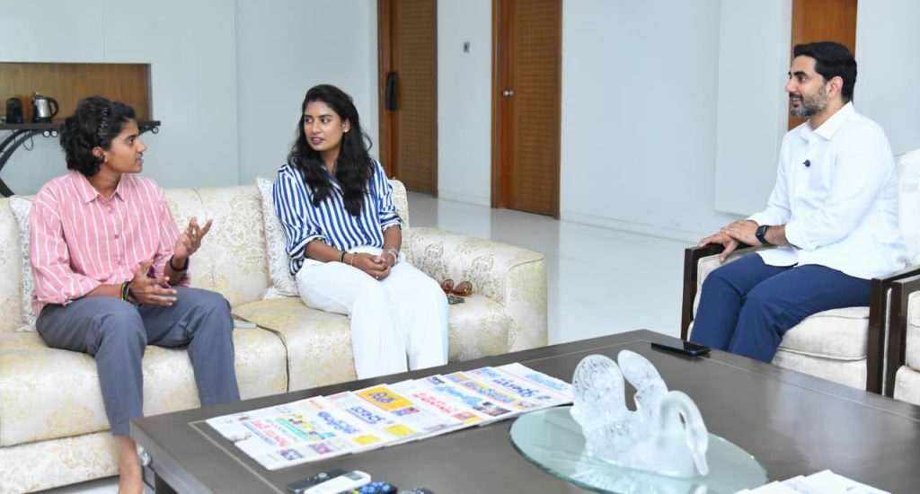 • శ్రీచరణి, మిథాలి రాజ్లతో సమావేశమైన సీఎం చంద్రబాబు, మంత్రి నారా లోకేష్.