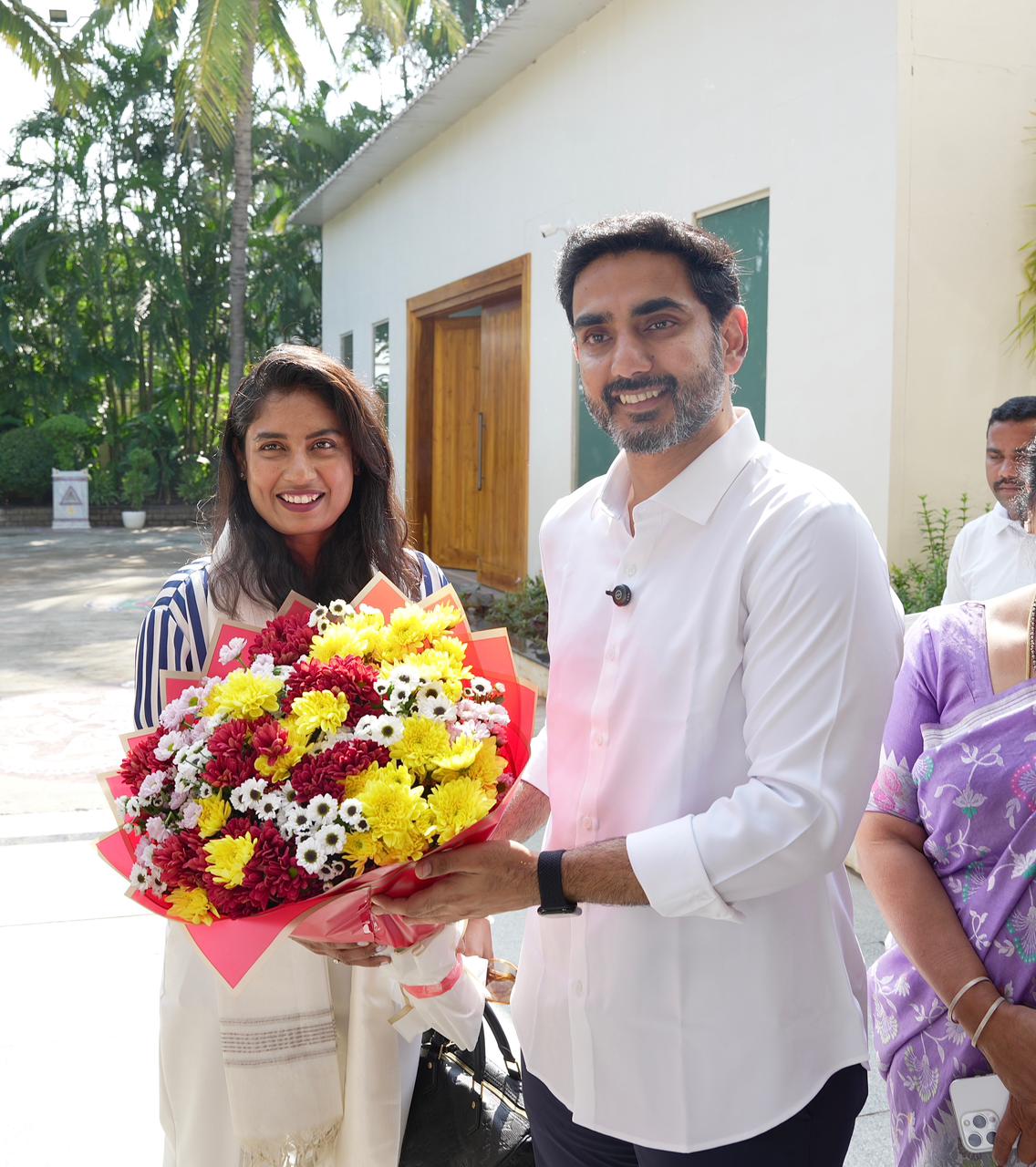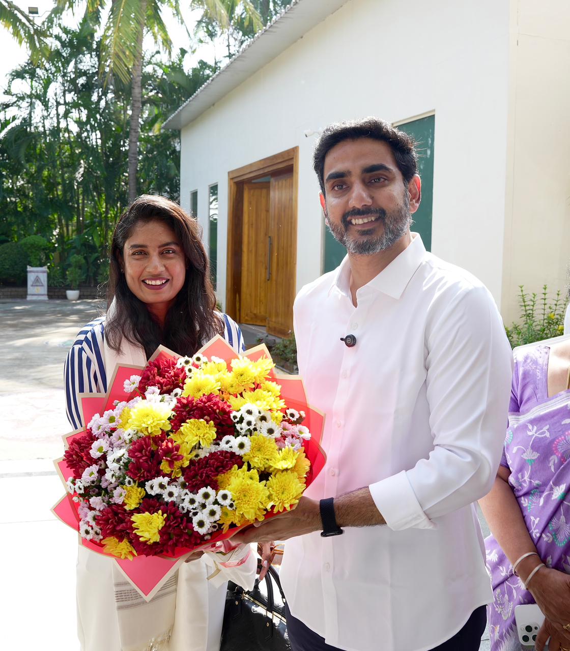 • క్యాంప్ కార్యాలయానికి వచ్చిన శ్రీచరణి, మిథాలి రాజ్కు స్వాగతం పలికిన మంత్రి నారా లోకేష్.